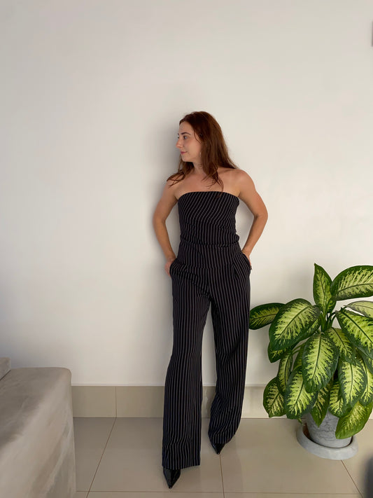 Calça pantalona risca-de-giz